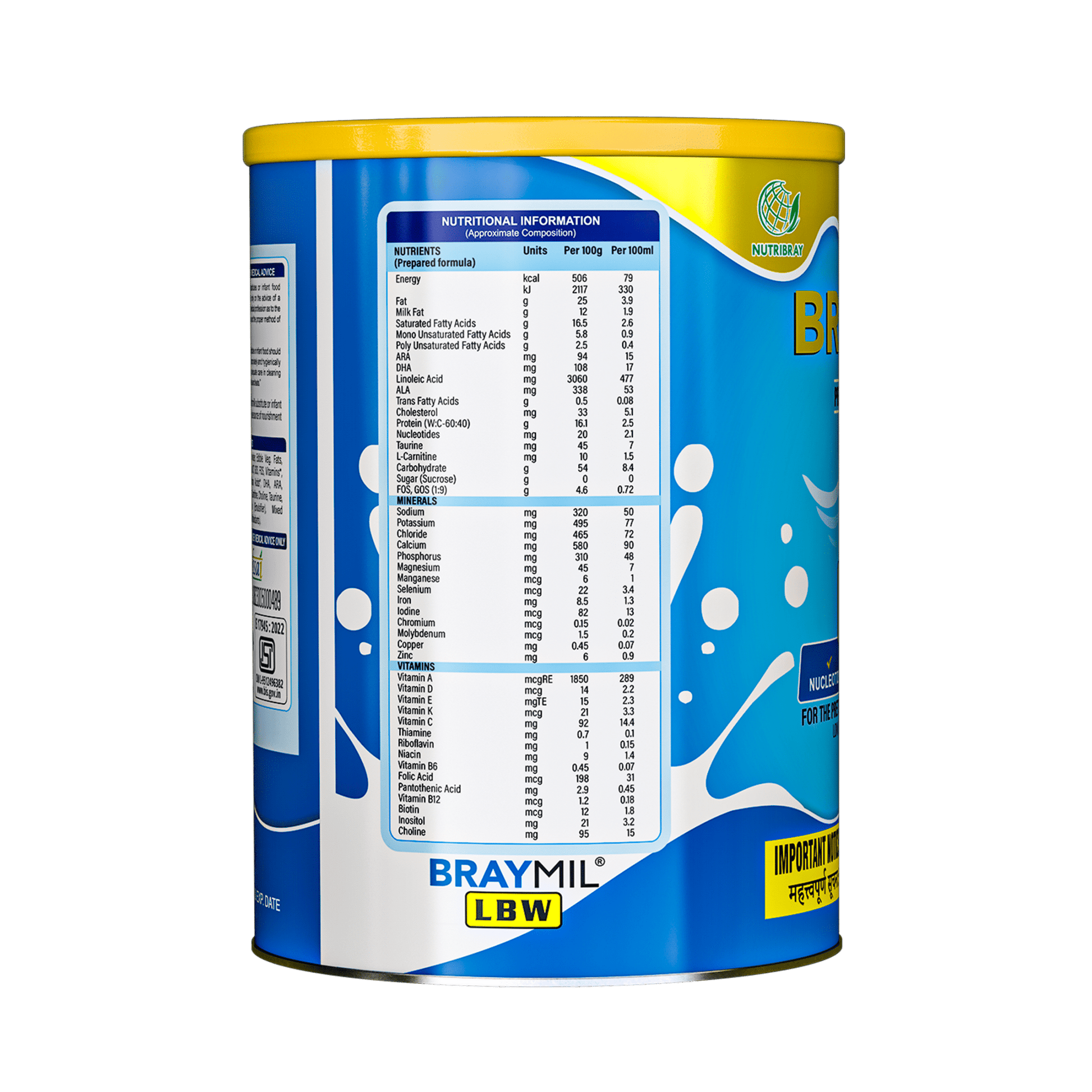 Braymil Pre-Term Formula LBW is specially formulated for the unique nutritional needs of preterm babies. It supports immunity, brain and visual development, and healthy growth during early development. Designed for low birth weight babies born before 37 weeks, Braymil LBW provides a precise blend of nutrients to foster overall well-being.
