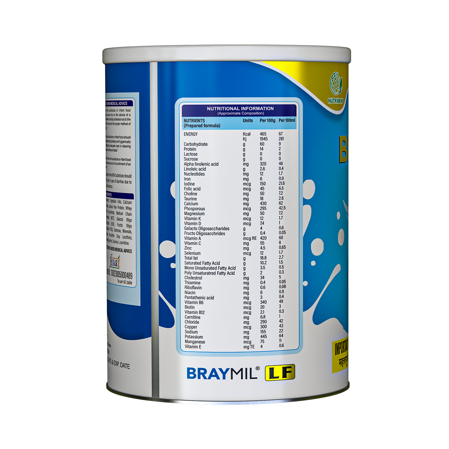 Braymil LF Up to 24 Months Powder is a specially formulated nutritional solution designed to meet the evolving needs of toddlers up to 24 months. It is enriched with immunity-supporting nutrients, brain and visual development nutrients, and overall growth nutrients to provide a comprehensive and balanced foundation for early childhood nutrition.