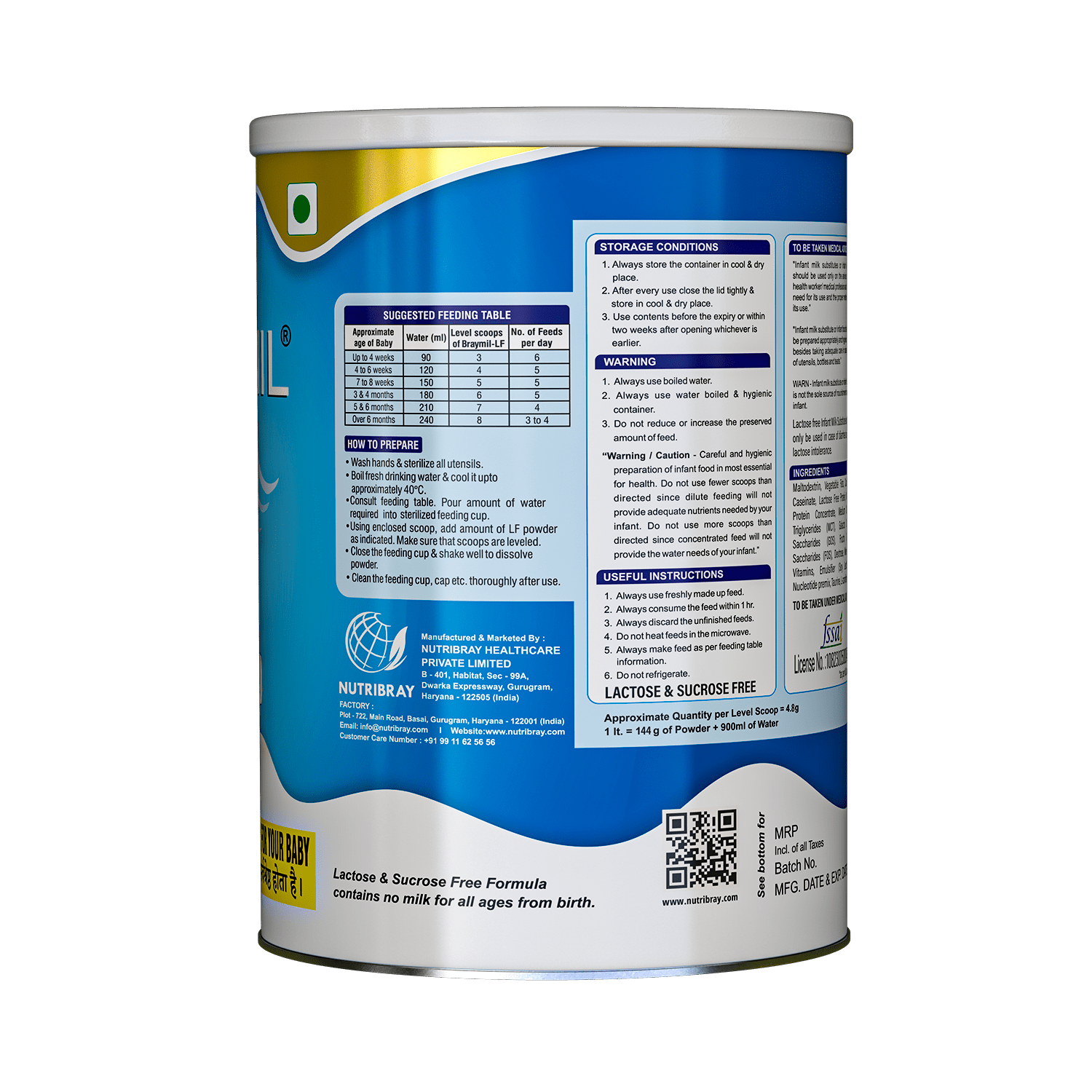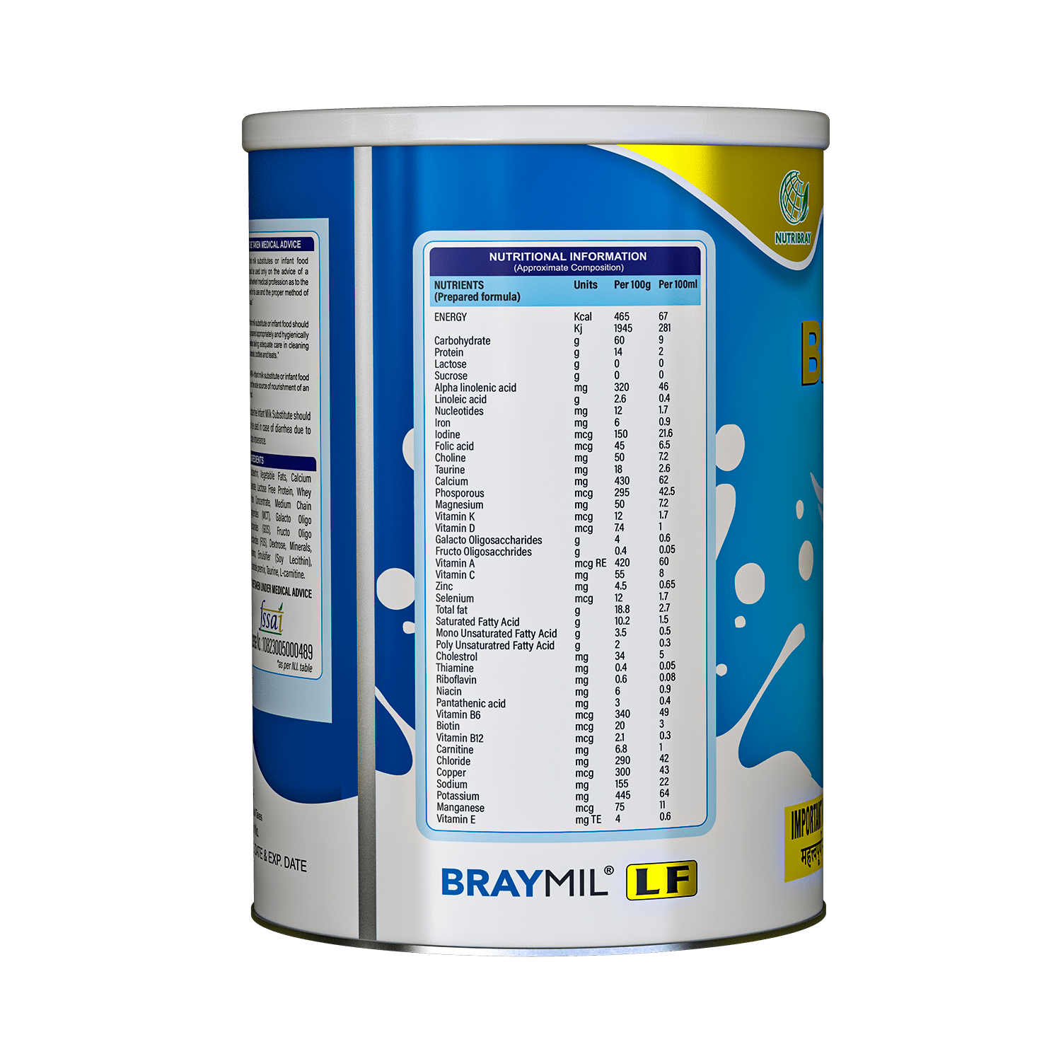 Braymil LF lactose free Formula - 400 g Tin pack - Braymil